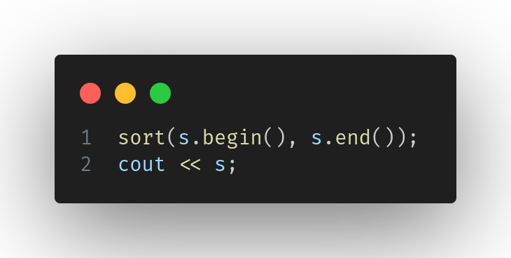 • Untuk mengurutkan string s ="dcba" , Kita hanya perlu